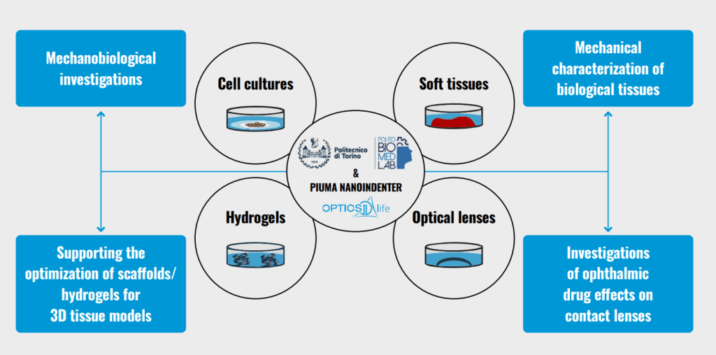 In January 2024, Marta Tosini, Diana Massai and Gianpaolo Serino, with further collaborators, published a paper about the characterization method they developed using the Piuma. This study proposes a nanoindentation-based technique to quantitatively analyze time-dependent load relaxation responses of soft biological tissues and hydrogels. This approach identifies the time-dependent behaviors of each sample at the cell-length scale, facilitating quantitative comparisons of their mechanical properties.