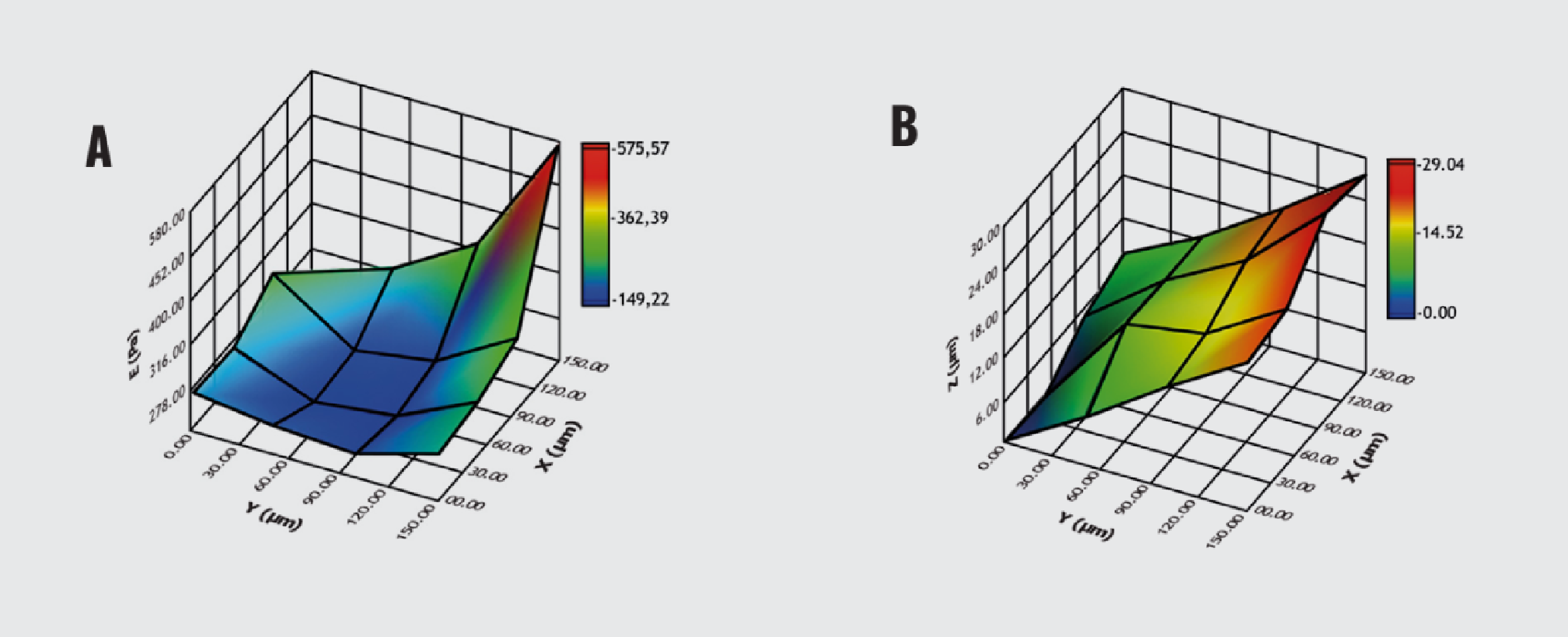 3D map of ECM hydrogel. (A) Surface plot of Young’s modulus. (B) Surface plot of topography.