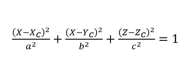 Where a,b,c are the ellipsoid semiaxes, and the subscripts refer to the center coordinates of the ellipsoid.